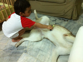 Either way, Togo squeezed and squirmed his way just so he can sit under the little kid, who then promptly got up and left!